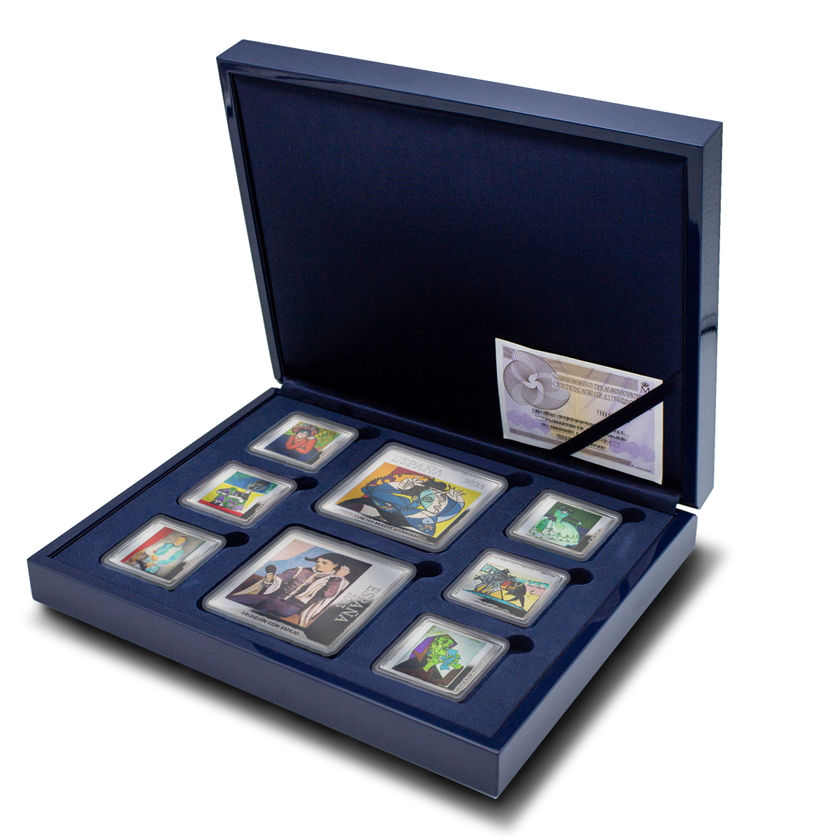 2023 marks the 50th anniversary of the death of the well known painter PABLO PICASSO. To celebrate this event "Fabrica Nacional de Moneda y Timbre-The Royal Spanish Mint" is issuing a collection of silver coins that comprise 6 square coins of 1oz of silver and 2 square coins of 135g of silver